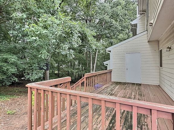 Upstairs, all three bedrooms are thoughtfully painted and filled with natural light. The spacious primary suite includes vaulted ceilings with exposed beams, a ceiling fan, and treetop views. The en-suite bath boasts a soaking tub, separate shower, dual vanity, and a large walk-in closet.