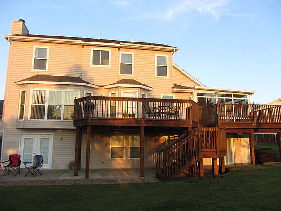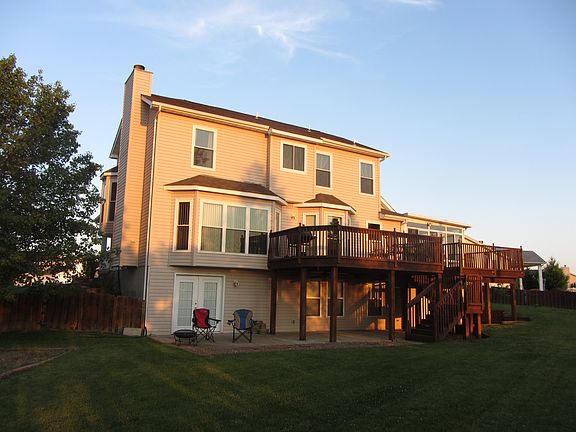 NO SHOWINGS UNTIL SATURDAY 6/25. Welcome Home to this beautiful 4 bedroom/3 bath 2-story on a cul-de-sac. Upon entry you are greeted with beautiful wood floors through out the main floor. 2 story foyer and open stairwell. Enjoy entertaining in the large eat in kitchen that flows into the spacious family room with full masonry gas fireplace and bay window. The kitchen offers a large pantry, center island, separate eating area with additional bay/French Door that opens to the large deck. Convenient main floor laundry. Upper level master suite has trayed ceilings, large walk-in closet, and a master bath with a double sink vanity, garden tub, and seperate shower. The two additional bedrooms have amazing windows and offer plenty of storage. The finished LL is wired for a media room and offers an additional bedroom and roughed-in bath. The large backyard is perfect for entertaining or a pool!! Enjoy an additional 4 seasons room complete with air conditioning and heating unit!