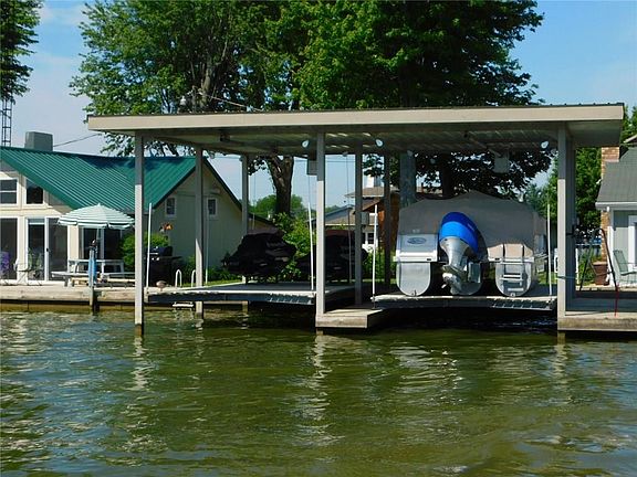 Location, Location, Location! This "cabin" is situated on Indian Lake and has a "one in a million" view!! Inside has some original log walls and a great loft! Heat source is a fireplace with thermostat. Cottage is totally furnished. Outside features a nice shed and a fabulous, double covered boat dock! The jetski side of the dock has a remote control. Tri-toon and jetskis are included at no additional cost! Must see! Association fees are $170 per year. Shared well fees are $150 per year.