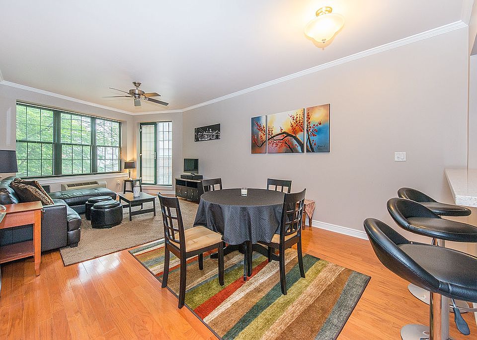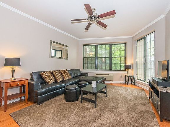 Move in ready Fantastic location walking to downtown & train with gym Hardwood floors updated kitchen (ss appliances) and bath Washer Dryer in unit 3fr condo spacious closet extra storage in building Secured entry bldg with intercom elevator municipal lot across the st 65 per month extra storage in building