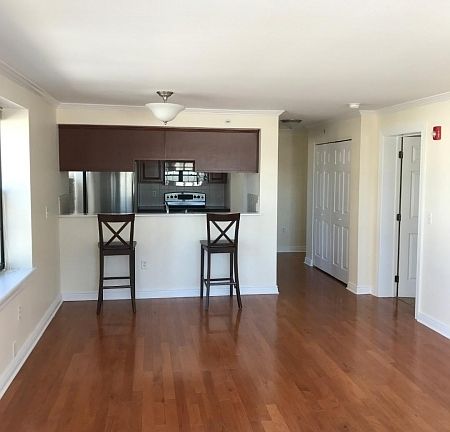 Spotless one bedroom,one bath, end unit condo in one of the most desirable building locations in Morristown. Walking distance to all the shops, restaurants,and train. Unit located on the 4th floor with great views and lots of natural sunlight. Features include hardwood floors, carpet in bedroom, in unit washer/dryer, and stainless steel appliances. Key fob secure entry at both entrances with intercom system. Elevators near each entrance. Storage ,on site gym and one parking spot included. Additional parking is available.