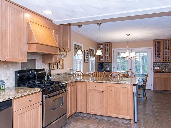 BEAUTIFULLY EXPANDED CAPE with newer addition and finishes throughout! Wood floors and upgraded porcelain tile floors add warmth and detail to this home.Expanded kitchen with granite counters,stainless steel appliances, eating bar and large eating area with built in cabinets. 1st floor Master bedroom offers wood floors, walk in closet and gorgeous full bath with separate tiled tub and shower. Additional 2 bedrooms on 2nd floor with ample closets. Stunning family room with a large, custom built wet bar, ductless LG HVAC unit, radiant heated plank tile floor and gas fireplace has French doors out to a 3 season room that overlooks the level yard with hot tub, patio and deck. This is a yard for entertaining! Lower level offers a play room, office/bedroom, mudroom, half bath with laundry and access to the over sized garage with additional workshop area. This home is located in a quiet, cul de sac but near park, shopping, transportation and highways!!
