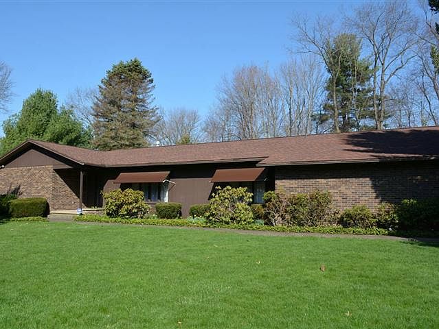 Large brick ranch home with great open floor plan. Large formal dining room open to living room. Possible 4 bedroom home. Room off kitchen could be den/office/playroom, first floor laundry, hardwood floors. Move in condition home, lot is mainly wooded. Great location, level lot.