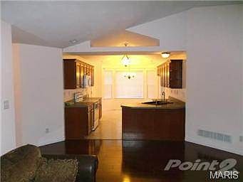 Maintenance-free villa with everything all on 1 level. No steps to climb. 2 car garage w/ concrete wheelchair ramp. 2 bedrooms, 2 baths. Hardwood flooring in entryway. Vaulted ceilings, plant shelf, open floorplan. Gas fireplace. 2 high quality ceiling fans. Cherry cabinets w/ crown molding. Bay in dining area. Large walk-in closet in the master bedroom. Double doors to master bedroom. Whirlpool tub in hall bath. Electric & gas dryer hookup. Patio with a nice view. Nice & neutral decor easy access to Hwy 94, Page Extension, or 70. Top, move-in condition. Brokered And Advertised By: Equity Missouri LLC Listing Agent: Richard Champ