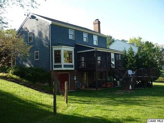 Our 2 story,4 bedroom,3.5 bath home is on 1.1 acres on a cul-de-sac.We have extensive hardwood floors,a screen porch,elevated deck and fenced rear yard that backs up to woodland and pasture.There is a basement work shop,two outbuildings,a covered front porch and community access to the pool,tennis courts and the Rivanna river.Our owners have taken great care of the property so offer a buyers warranty.We have a propane powered generator,2 real fireplaces and a basement den and bathroom