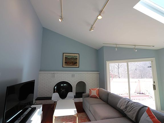 Rhinebeck custom designed and built contemporary home. Sited on 5 private landscaped acres on a quiet cull-de-sac. This light filled home features; 4 bedrooms w/master suite, 2.5 baths, a spacious open living room w/vaulted ceilings, sky lights and fireplace, the living room wall of glass doors open to deck, large screened-in porch & in-ground swimming pool, the dining rm w/fireplace opens to the kitchen and the pool deck, a chefs kitchen with professional stainless steel appliances, granite counter tops and plenty of storage, a full finished basement & a 2 car garage. Located in one of the areas most desirable neighborhoods. Close to Rhinebeck village, Bard college, Amtrak & Omega. This is a perfect fulltime home or a weekend retreat. A must see to appreciate.