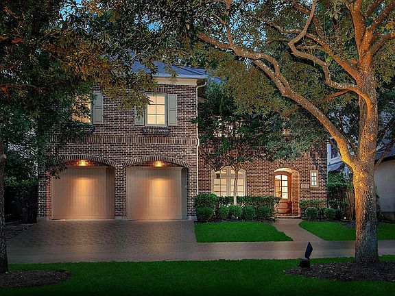 Spectacular custom home that backs to a lush greenbelt in the gated enclave of The Pointe in Panther Creek! With private access to the lake, park, dock and private park, as well as a reserve, this home has it all! Vaulted wood beam ceilings, hardwood floors, crown moulding, built-ins, detailed trim work and recent interior paint. Gorgeous open concept kitchen with granite counters, double oven, breakfast bar and walk-in pantry overlooks breakfast room, formal dining and den with gas log fireplace (current owners extended the main living area out to create more space); study with French doors; butler's pantry off the kitchen with sink and wine chiller; master retreat down with sitting area; 3 bedrooms and game room up; easy maintenance fenced yard has covered patio with outdoor kitchen and no rear neighbors, ensuring privacy. Close to fine dining and shopping too!
