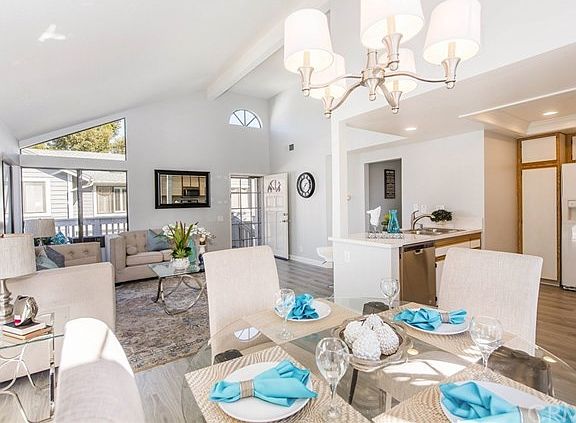 Ideal for first time buyers, investors or downsizing, this charming home is a must see! Rarely on the market, this 2 bedroom, 2 bath floorplan offers all living on one level, with no one above or below. Extensive remodel was just completed in October. Enter the home into the spacious main living area with soaring ceilings & walls of windows that flood the room with sunlight & will quickly become your favorite place to be! The open floorplan has the living area opening to both the dining area & kitchen, perfect for everyday living, as well as entertaining family & friends. Remodeled kitchen features new quartz counters, new recessed lighting, stainless steel appliances, fixtures & a redesigned breakfast bar with seating. The generous master suite features a large walk-in closet. The master & hall baths have new crisp white cabinetry, granite counters, new lighting & fixtures. The large secondary bedroom, with mirrored wardrobes, could also function as a home office/den. Laundry is a breeze with access to your inside laundry closet with a washer & dryer. Just painted throughout in a warm designer color & brand new wood-style floors add a sense of style & continuity throughout the home. Directly below is the shared garage. Just steps to both the association pool & nearby Orchard Park. Attend award winning Irvine Schools including Northwood High. Convenient to shopping, dining & easy access to freeways. A low HOA & no Mello Roos makes this home a great value. Welcom