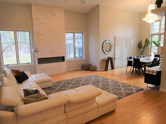 A beautiful modern ranch with a BRAND NEW ROOF on a quiet side street in Southwick. The first floor features a good size living room, dining room, kitchen with granite countertops and stainless steel appliances, master suite, with a walk-in closet and full bath, three additional well sized bedrooms, full bath, and first floor laundry room, with utility sink. The huge basement features a family room, kids play area, home gym, additional room that can be used as another bedroom, and full bath with a sauna. Additional features include a sun room, two decks, Jacuzzi, and huge 3 car garage. The house sits on a mostly flat, private 1.41 acre lot. Audio and video recording/surveillance devices are on premises.