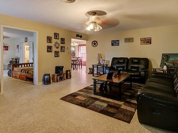 Large ranch style home set on1/2 level lot with gorgeous large shade tree in front yard. Wonderful neighborhood and great spacing between properties. Terrazzo flooring except baths that are tile and master bedroom which is 20x20 with laminate floors and sliding glass doors to patio. Formal living room is 18x13.6 and flows into generous 17x13 family room with French doors leading out to spacious patio area and fenced in yard. The 10x10 bright dining area accompanies the 13.6x8.6 Galley Kitchen. It is a split floorplan and 2 bedrooms share a Jack + Jill bathroom. The garage area was turned into a 4th bedroom and storage. This could be converted back to garage with little effort. There is no homeowners association and therefore no HOA fees. If you are looking for a home which offers lots of room and a nice yard in a much sought after community, then this is waiting for you and your own personal touch.