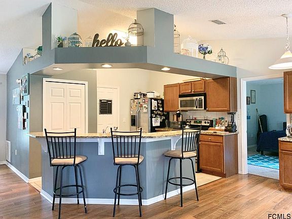 Beautiful 3 bedroom, 2 bath home with many desirable features! Recently painted interior with granite countertops , stainless steel appliances, and hardwood floors. Located on a quiet a cul-de-sac in the Lehigh Woods subdivision of Palm Coast. The back yard is completely fenced in for added privacy and includes a screened lanai perfect for enjoying the peaceful Florida breeze. Open concept design inside is great for entertaining and is beautifully accented with shelving architecture and recessed lighting. Washer and dryer is included with purchase and is conveniently located in house. Minutes to shopping, beaches and more!
