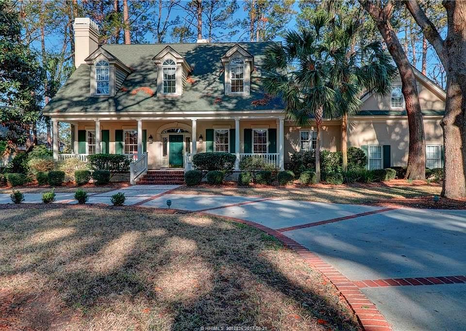 Beautiful Low Country home offering a lovely lagoon view w/4 bedrooms, 3 1/2 baths & 2 car garage. The kitchen has lots of cabinets & opens to a dining area & living room w/2-story ceiling & fireplace. Separate den also with a fireplace, spacious formal dining room, & large Carolina room w/tile flooring, high ceiling & lots of windows. The master bedroom & 3 guest bedrooms are located on the 2nd floor. Library/office w/built in cabinets. Other features include: security system, crown molding, walk-in attic, 2 refrigerators & front & back staircase to the 2nd floor & driveway edged in brick.