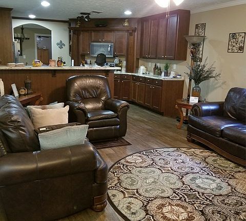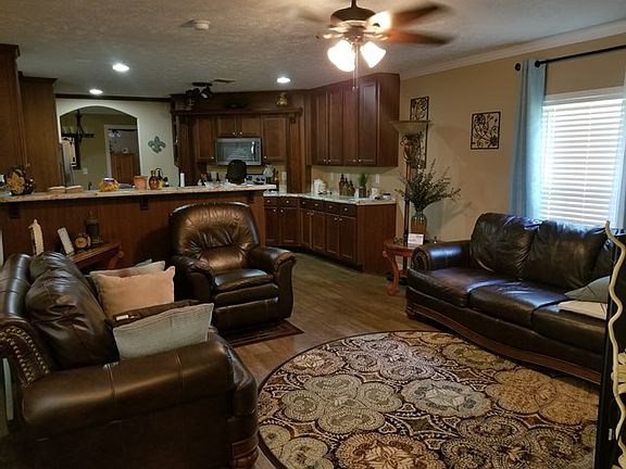 Gorgeous, move-in ready, custom built manufactured home.Built to order by Owner. Big bedrooms & huge open concept Living Area to Full sized Kitchen w/Stainless Steel Appliances, amazing dark wood cabinets and separate Dining Room. Laundry Room w/ storage/washer/dryer hook-up; Master Bedroom includes a walk in closet; Master Bath w/ sunken tub & shower. Huge shed included in this well maintained, 2 acres. This home looks like it is new! Perfect condition. Peaceful yard w/trees lining side & back of property for privacy. Outdoor living space is a bonus and must see for this property!