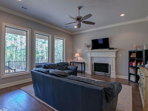 Beautiful home sits on flat lot, fully fenced & backs up to protected green space. Amazing kit w/custom cab, SS app, granite counter tops, walk in pantry, Lrg island/breakfast bar opens to dining & spacious livg area that boasts a beautiful gas log FP. Windows all across the back that gives a perfect view and setting for entertaining inside or outside on 2 Covered Patios. MST suite w/tray ceilings & spa like MB, private water closet, tiled WIS, dbl sink vanity, soaker tub. 3 guest rms, BONUS ROOM UP.