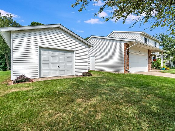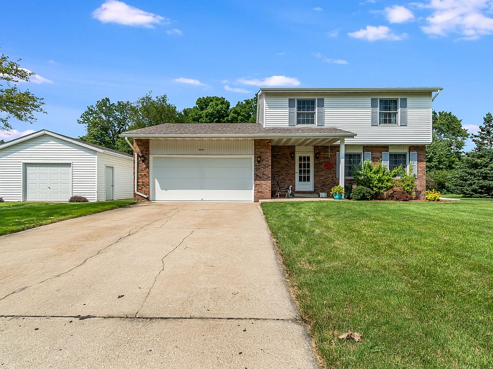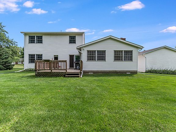 Location Location Location! .65 Acre lot is the setting for this 4 bdrm 3 bath 2-story home with unfinished basement & 3 car garage! Near Sunset Park, New Hospital, Toll Rd & South Shore is where you will find this well maintained home. Covered entry leads to main level featuring large living rm open to formal dining all with laminate flooring, kitchen has snack bar & sliders to nice deck overlooking slight ravine & lots of trees, 1/2 bath & huge rec-rm with frpl & door to recently finished 2 car garage with newer flooring & pull down stairs for storage above, upstairs you will find a nice 3/4 guest bath & 4 bdrms including master with a private full bath, unfinished basement offers laundry facilities & lots of storage, central air approx 10 years old & the furnace is approx 3 years old & offer zoned heating/cooling, new hot water heater 2014, tilt-in windows in upper level & most of main, new gutters & downspouts 2015 & a bonus 28x18 detached garage for your toys, lawn equipment etc.