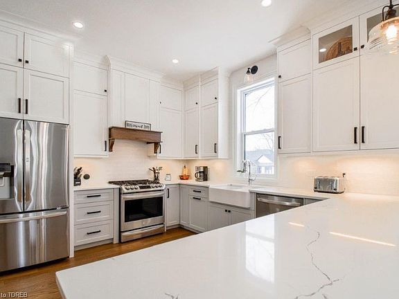 This century home renovation should be in a magazine. This stunning 2 storey yellow brick home has had its 2 main floors completely renovated into a modern day open concept masterpiece with 10 ft ceilings. The bright gourmet kitchen is any chefs dream open to the large dining room perfect for all your entertaining. The extremely large living room will keep all your guests and family very comfortable. Use your imagination for the back living space as a family room or main floor master bedroom with ensuite as well as laundry room. The upper level also completely redone with high end finishes has master bedroom and ensuite as well as 2 other bedrooms with a shared bath. The house is finished with original trim which has been refurbished, new engineered hardwood flooring, new windows, new plumbing (2019), new wiring (2019) and the list goes on. Be prepared to call this unique beauty home. Call to set up your private viewing!