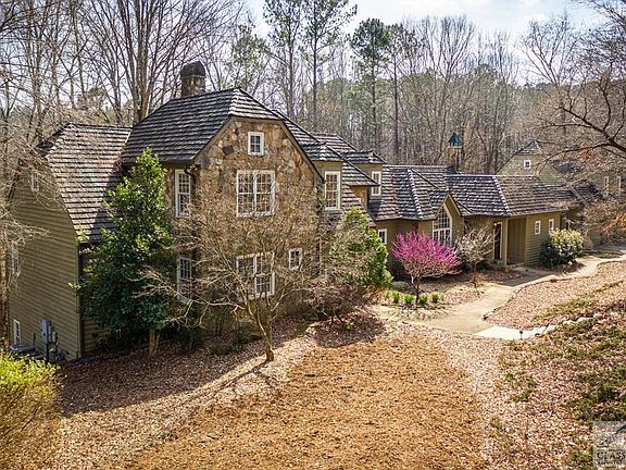 Classic English Manor in the heart of Athens! Unequaled curb appeal and charm will greet you at this estate reminiscent of an English Manor, complete with stone and cypress wood exterior, 50-yr cedar shake roof and stately solid wood doors. Mature landscape, shrubbery and perennials line the 2.94-acre lot, in the gated River Shoals subdivision, nestled on the edge of the Middle Oconee River. Sprawling main level includes owner's and guest suites, spacious living room with wood-burning stove, dining room, breakfast room, keeping room and chef's kitchen. The kitchen is well-appointed with custom cabinetry, Italian granite countertops, island prep sink, subzero refrigerator, professional grade 6-burner gas range with electric convection oven and side gas oven. Separate ice maker, butler's pantry and large storage pantry make entertaining a delight. The keeping room offers a stone fireplace with wood-burning stove, built-in cabinetry, and vaulted ceiling. Step out of the keeping room through one of three sets of French doors onto the screened porch. The owner's suite includes double French doors and a fireplace. The main level is defined by expansive windows overlooking the private, wooded property and lovely heart pine floors throughout the common areas. Finishing off the main level includes mudroom full bath, half bath and laundry room with sink and extra storage. Upstairs you find a loft with heart pine flooring and three guest bedrooms all with ensuite tiled bathrooms and ample storage. Travel down the finished staircase to the full daylight, walkout basement (unfinished) with workshop (220V outlets), plumbed and ready for your heart's desire. The terrace level leads out to a covered porch, overlooking the back acreage and winding creek. Termite bonded and transferrable service contract to maintain gas furnaces (upstairs unit has been replaced). Covered walkway leads to the 3-car garage (220V outlet) with additional unfinished (plumbed) space perfect for teen/in-law suite. Additional parking pad at the top of the driveway with terraced steps leading to front door. Gated, quiet estate neighborhood convenient to downtown Athens, the University of Georgia and both local hospitals. Homes in unparalleled River Shoals rarely come available, so don't miss your chance to own this stunning estate!
