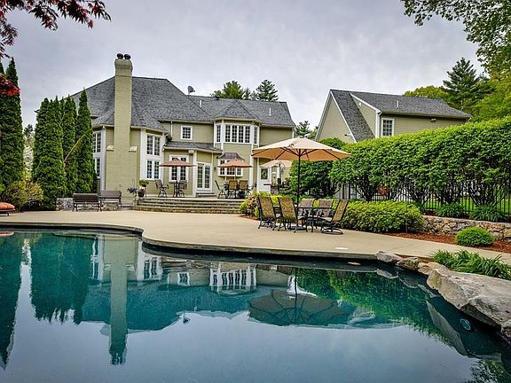 Vacation at home throughout the year in sensational private back yard w/ gorgeous patio, firepit, heated gunnite pool, PUTTING GREEN, batting cage, & cabana. Stunning Highland Park neighborhood home backs to Sudbury River on quiet cul-de-sac. Designed for entertaining & relaxation, inside & out, this home offers three levels of incredible living space. The open plan two-story family room/kitchen features gas fireplace, balcony overlook, kitchen island, heat & humidity controlled walk-in WINE ROOM. Rare 4-car attached garage w/ fantastic HOME THEATER above--fixed projector w/ viewing screen, kitchenette, & half bath. Convenient beautifully utilitarian mudroom w/ laundry leads to kitchen, theater, & patio. Office, dining room, living room, & foyer w/ hardwood. 2nd floor-four bedrms including luxurious master suite & 2nd full bath. Incredible walkout lower level is finished & offers second family room with fireplace, game room, spare room, & full bath. Minutes to MBTA train & major routes
