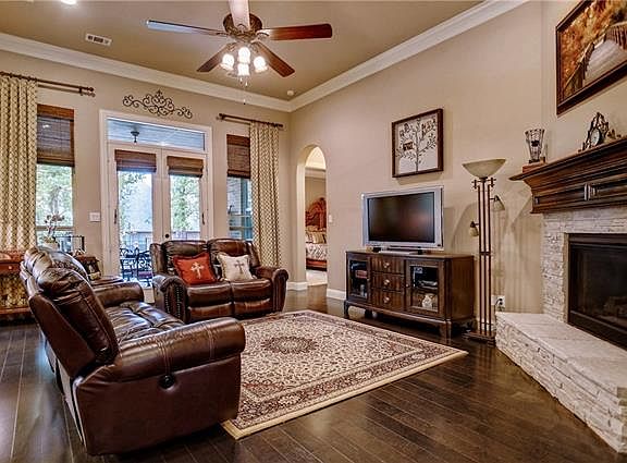 BEAUTIFUL 1-STORY HOME IN PRESTIGIOUS GUARD GATED HOGAN'S GLEN. This Ashton Woods Piedmont Plan is situated on a heavily-treed lot with over $84,000 in premium upgrades including 10 ft ceilings, rich hardwood floors, granite counters, SS appliances, butler's pantry, His & Her master closets and a separate Master Suite sitting room with fireplace. Towering oaks and beautiful landscaping provide a peaceful backyard sanctuary. Energy Star Certified.