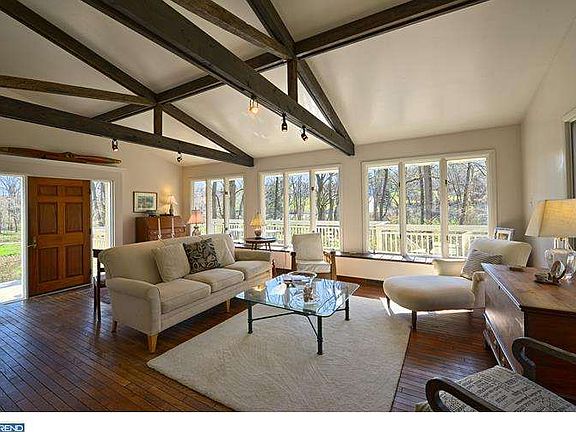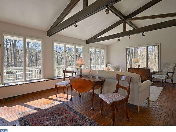 The home and property has been aptly described as a charming cottage in the woods situated on three acres. Location! Location! Picturesque in every season. Dine by fireside in the formal dining room. Spacious living room with cathedral ceiling and exposed beams provides serene views of nature from the wall of windows complimented by a window seat. The open floor plan flows to the family room with more views and continues into the updated kitchen with granite counters, counter seating, plenty of cupboards and pantry. Hardwood floors throughout the main living areas (three of the four bedrooms have carpet). Enjoy your favorite beverage while relaxing on the deck overlooking the stream that meanders through the property; entertain friends and family while you toast some marshmallows around the fire pit on the stone patio at the edge of the deck steps. Roast hot dogs at the barbecue pit or read a good book while relaxing in the Adirondack chairs next to the babbling brook. And if that's not enough, there's a patio at the back. Down the stairs to a recreation room/office/study for whatever your needs are. Storage, cedar closet, laundry, and roomy entrance to the attached two-car garage complete the basement. This exceptionally maintained home with easy access to 202; slip ramp to 76; Rt. 30, Wegmans, restaurants, etc. HMS One-Year Home Warranty Provided to Buyer. Septic Inspection done - seller is replacing system.