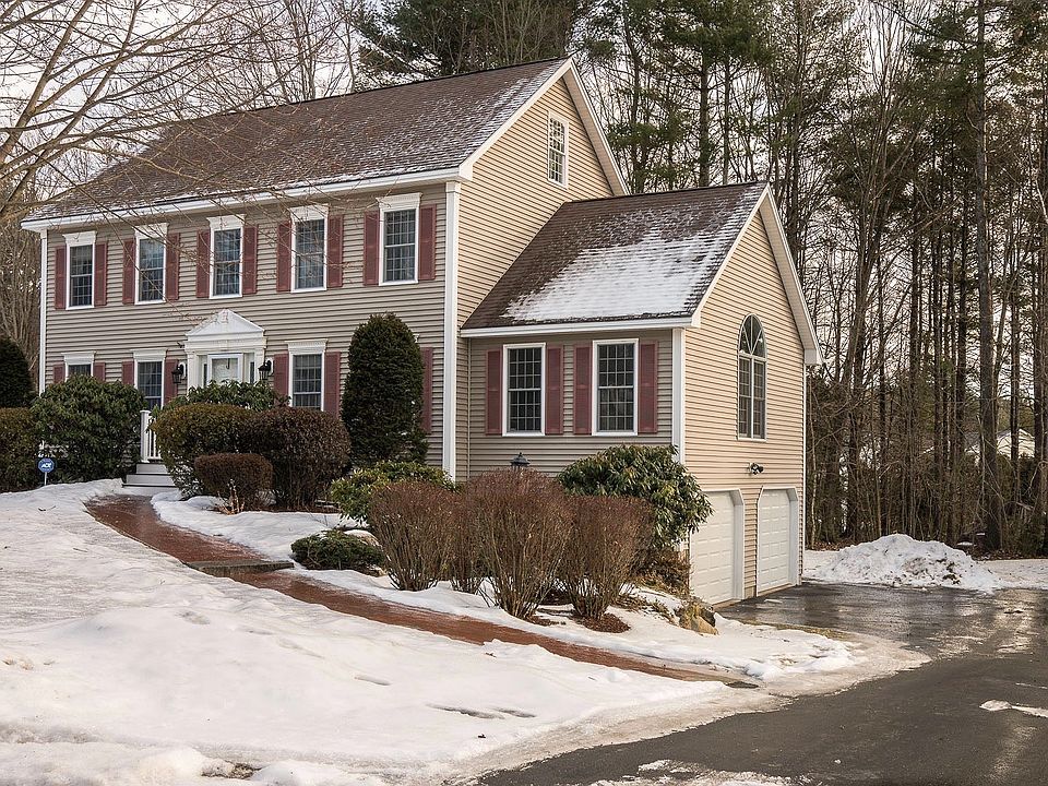 Renovated 3 BR, 2.5 BA, 3,456 sq ft home offers a newly updated eat-in kitchen with granite counters, new stainless appliances and tile floor. The interior has been freshly painted throughout and there are new 1st floor carpets, a new front door, new front steps, new garage doors and a new maintenance free deck to enjoy the wooded back yard. All bathrooms have been updated with granite counter tops. The sunny & bright family room has a 14’9” cathedral ceiling and a gas fireplace. A 13’ x 19’ living room could be used as a playroom or as a bedroom. There are 3 bedrooms on the second floor, with additional 3rd floor office & guest room, plus den/gym in the walk-out basement. Amenities include an irrigation system, whole house generator hookup, on-demand hot water heater and central air. 2-car garage with storage area. 1.53 landscaped acres with brick/granite walkways. Nothing to do but MOVE IN! TOP BEDFORD SCHOOLS, Town amenities, close to Manchester/Boston highways.