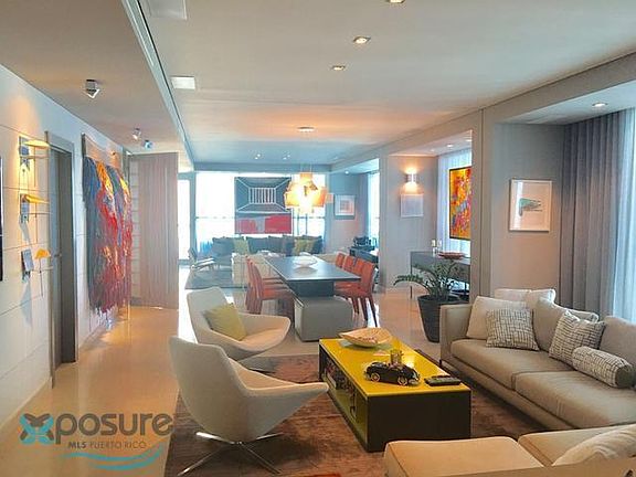 One of a kind, this luxurious apartment is exquisitely decorated with elegant finishes is a true gem. Arrive in your private foyer and walk into this amazing apartment with ocean views and a modern glass balcony. This exclusive building with doorman has one apartment per floor which can be accessed through the main elevator or the secondary service elevator right off the kitchen area. It enjoys three spacious bedrooms, two full bathrooms and one powder room all finished with exquisite details, modern furniture and glass showers. The master bath enjoys a waterfall tub. The state of the art kitchen includes separate freezer and refrigerator, both which include drawers, and state of the art appliances. This is a smart home. Also included is a storage area. Located in the exclusive building ,Venetian in the heart of Condado, this a building which affords the security, privacy, and is walking distance to restaurants, hotels, schools and exclusive shops..