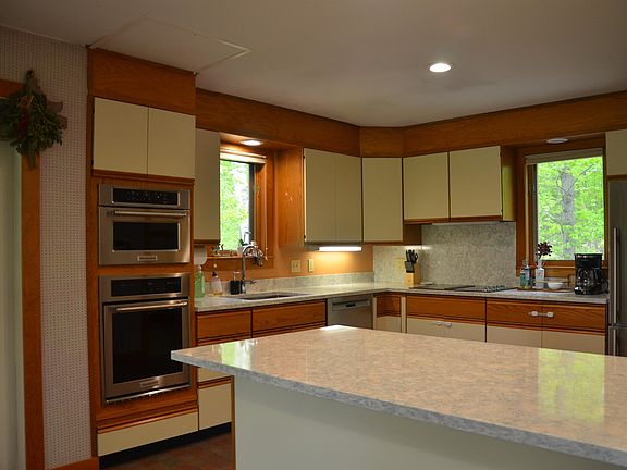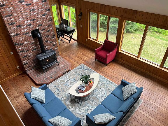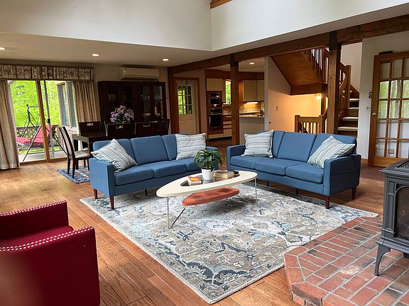 Wonderful opportunity to own an architecturally designed open-concept waterfront property for large family, vacation escape and or investment property in the desirable community of Eastman. 7 Rolling Hill boasts 210 feet of frontage on Anderson Pond where you can launch your canoe, kayak and paddle board or connect to a multitude of trails that go on for miles. Home provides large open concept sun-filled rooms with cathedral ceilings, expansive windows and skylights. Enough rooms to provide accommodations for 10+ with plenty of space for privacy. The two main bedrooms have en suite baths and private decks overlooking the pond and westerly views connected by an open landing perfect for lounging or fantastic light filled office area. 2 propane stoves in the expansive main living area and light filled family room in the walk out basement provide heating along with 4 splits which also provide AC for those hot summer days. 2 more full baths and flexible additional rooms all with closets provide more than enough sleep space for a crowd. Eastman amenities include: lake, golf, tennis, hiking and cross-country skiing. Be sure to visit the South Cove Activity Center where you will be provided a tour of the expansive exercise room, heated pool and much more. The ultimate live, work, play experience!