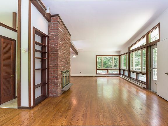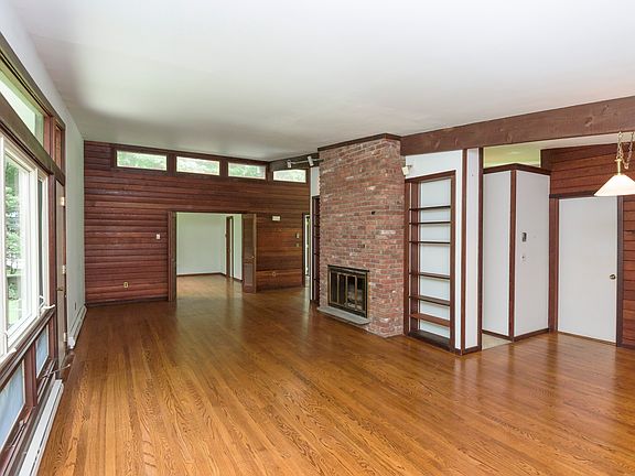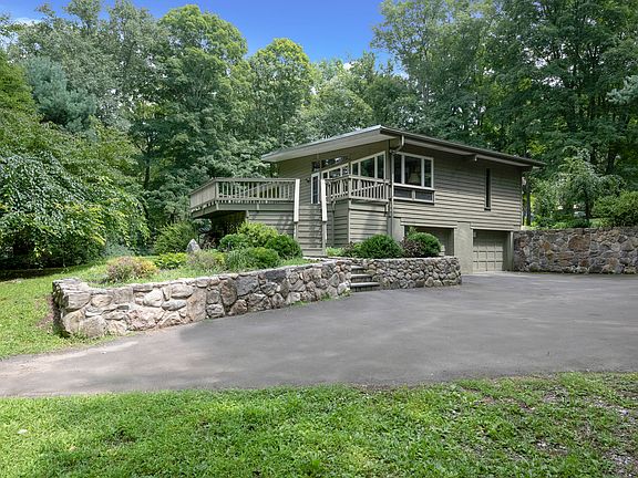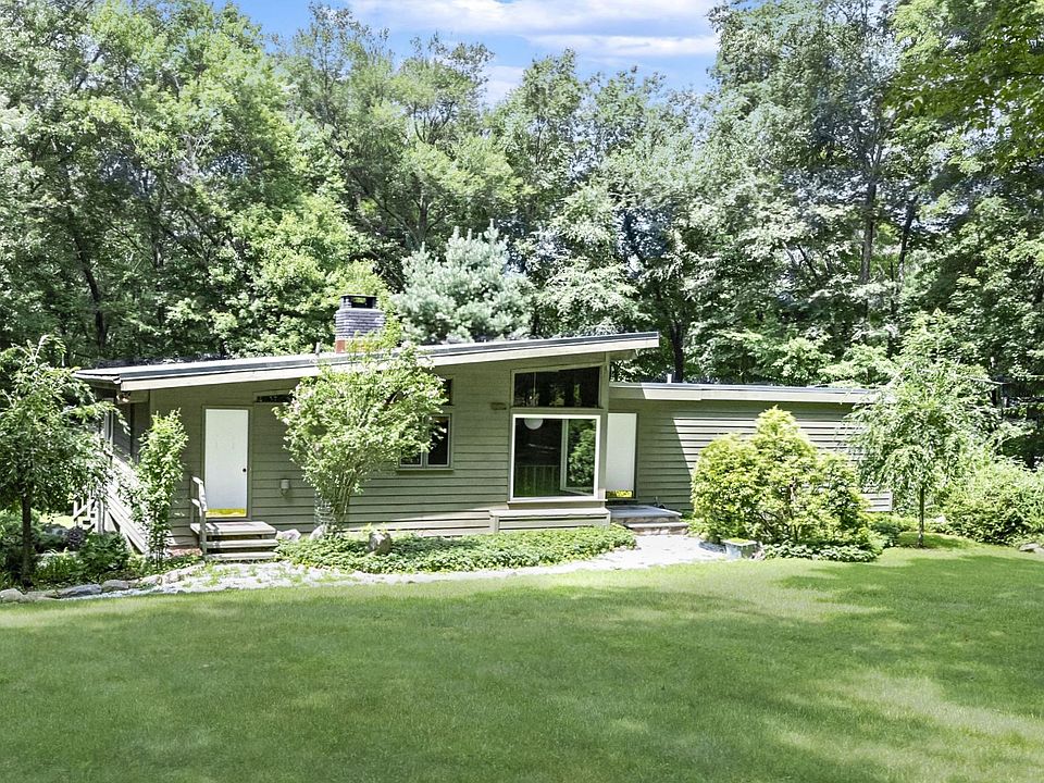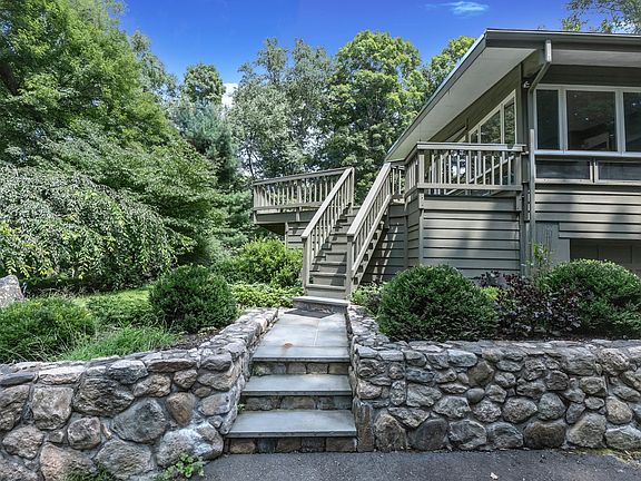 Extensive use of glass and an open design forge a connection with nature in this bi-level midcentury modern home offering four bedrooms and two and one-half baths. Privately sited on just over an acre on a quiet cul-de-sac, the location is ideal and is within walking distance to Scotts Corners shopping and restaurants.