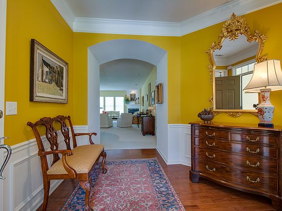 Breathtaking sparkling lagoon view like no other with fountain and a backdrop of woods on this Cumberland Hall model. 2444 sq ft, hardly lived in home. 3 bedroom, 2 1/2 bath and separate den. Formal dining area and Great Room with gas fireplace overlook the lagoon. The large gourmet kitchen has upgraded cabinetry, granite counters, gas cooktop, built in microwave and oven and a large island. The circular eating area has plantation shutters and a tray ceiling. Master suite with separate shower. 2 additional guest rooms with Jack-N-Jill bath.Extra golf cart area in garage. Cul-de-sac. Newly painted inside and fogged windows replaced.