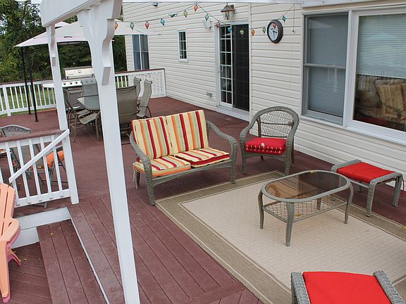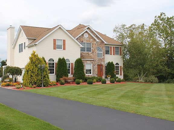 The unique, attractive and practically laid out floor plan of this Colonial makes this custom home a great investment. Cathedral ceiling Living Room, second stairway and two story entry add to the spacious interior. Enjoy the views from your multi-level 40x20 Trex deck with Bose speakers, Pergola and Meridian Natural gas grille. Appreciate the privacy with this end of Cul-de-sac location and from the patio around your heated in-ground Lagoon Shape gunite pool. Yard has sprinkler system for easy maintenance. Living Room/ Family Room with Surround sound and gas fireplace with multi-speed fan. Full cathedral ceilings and second stairway lead to open foyer and all bedrooms. Double door master-suite entry way with sitting room and walk-in closet. Master bath has jetted garden tub and separate shower. Home has two heating and cooling units. ADT Security system. Extended 3 year warranty on appliances. Many upgrades and custom items. You need to see this home to appreciate its