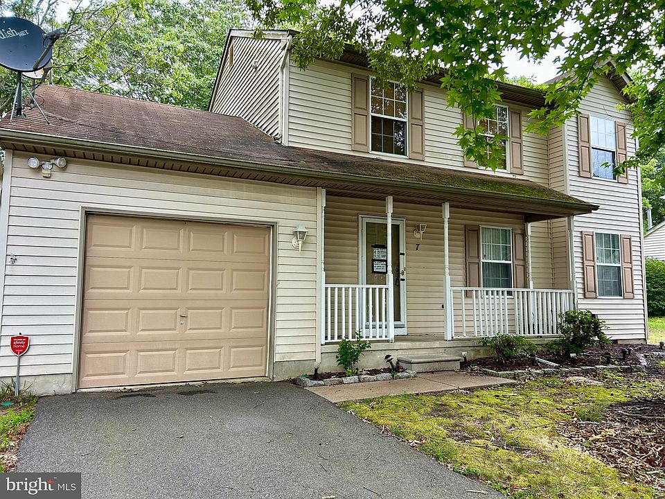 *New carpet ordered and to be installed.* Welcome to Harbourtown Estates! This two-story colonial style home features 3 bedrooms and 2.5 baths, starting with a welcoming covered porch. The first floor offers a spacious eat-in kitchen, a formal dining room, and a comfortable living room. Upstairs, you'll find three bedrooms, including an en-suite. The home includes a one-car garage and a rear deck, perfect for outdoor relaxation. The community is charming, with sidewalks and a pool for residents to enjoy. Located close to highways, shopping, restaurants, Long Beach Island, and Atlantic City, this home is a great opportunity to own in a lovely community. With a bit of TLC, you can make this house your perfect home. Don’t miss out!