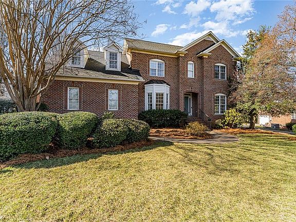 Location, location, location....custom built all brick home features hardwood floors on lower level, pocket doors for den/office, open floor plan with light filled great room complete with skylight and gas fireplace. Primary en suite on main level with tray ceiling and adjacent sitting room, laundry on main level. Kitchen has solid surface countertops, tile backsplash, gas cooktop, wall oven and built in microwave. Kitchen island complete with prep sink and disposal. Flush mounted ceiling speakers in dining room, den and kitchen for whole house sound. Built in shelving, plantation blinds and wait a spacious bonus room upstairs. 2 car garage and wired outbuilding. Roof 2019.