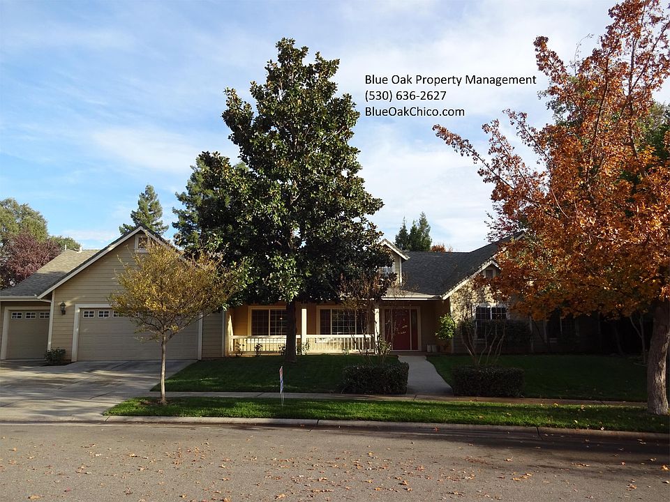 Blue Oak Property Management is offering for rent this 4 bedroom, 3 bathroom house located at 7 Roxbury Ct in Chico, CA. House has open floor plan concept with office area, formal dining area, and two master bedrooms on each separate sides of the house. Both masters have walk in closets and on-suite bathrooms with dual vanity sinks. One master bathroom also has a jetted soaking tub and vanity sitting area. Stay comfortable all year long dual zone central heating and air, whole house fan, gas fireplace, ceiling fans, and dual pane windows. Relax in your shaded backyard with mature landscaping, in ground pool, covered patio, and BBQ area. There is no lack of storage in the house. It has two walk in pantries, large laundry room with lots of cabinets, built in cabinets in living room and 3 car garage. Property is located secluded neighborhood in North West Chico.