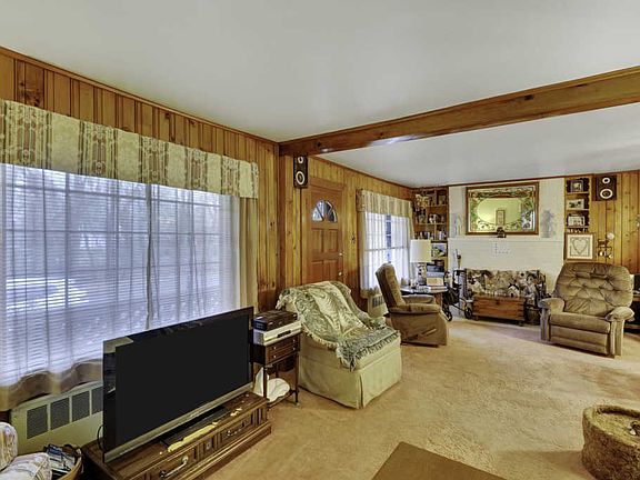 - RoomLivingRoomFeatures: Bay/Bow Window, Fireplace - Woodburning, Floor - W/W Carpet