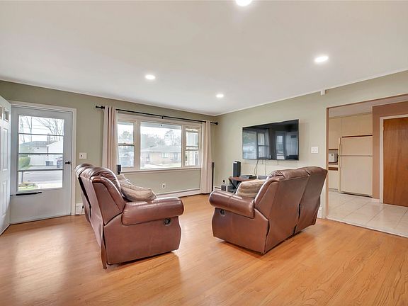 WALK TO THE BEACH FROM YOUR RANCH STYLE HOME THAT OFFERS TREMENDOUS LIVING SPACE! AN EAT IN KITCHEN WITH CABINETS GALORE, LARGE LIVING ROOM, DINING ROOM, OVERSIZED DEN/FAMILY ROOM, 2/3 BEDROOMS. ONCE HAD 3 BEDROOMS THAT CAN EASILY BE CONVERTED BACK BY PUTTING UP A WALL. 1 1/2 BATHS, OFFICE/BONUS ROOM, HARDWOOD FLOORS THRU OUT. LOTS OF NEW IMPROVEMENTS INCLUDE ROOF, WHITE VYNAL FENCE, LANDSCAPE, OIL TANK, DRY LOCKED BASEMENT AND SOLAR PANELS. TWO CAR DETACHED GARAGE WITH LONG DRIVEWAY LARGE ENOUGH TO PARK YOUR CAMPER, BOAT OR BOTH AND STILL HAVE PLENTY OF ROOM FOR THE CARS TOO. FENCED IN YARD PERFECT FOR YOUR PETS TO RUN AROUND!