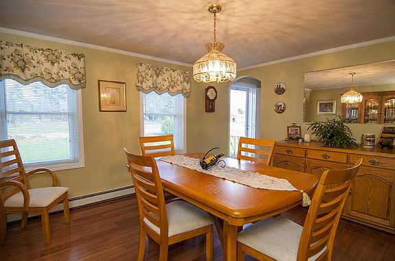 All the finishing touches found here! Crown moulding, gorgeous hickory hardwood floors in formal dining, living/family room, and upstairs hall. Island seating in fully applianced kitchen, first floor laundry. Striking heat-producing gas fireplace flanked by accent windows in large front-to-back living room! Huge master with abundant closet space and access to hidden storage room(s) over the heated garage! Lower level features spacious finished areas to entertain, complete with L-shaped bar. This one-owner home is perfection, and is beautifully sited with LONG road frontage and well-established gardens, in a country setting on a low traffic cul-de-sac of attractive homes.