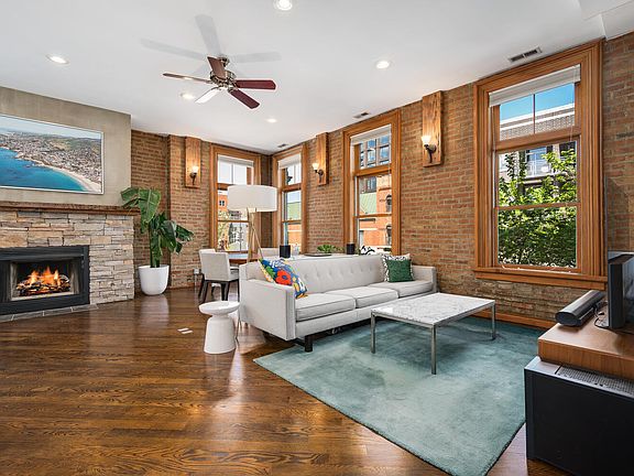 Discover this one-of-a-kind, recently updated, 1500 square feet, exposed brick and timber two-bedroom, two-bathroom loft with attached, covered and secured parking. Located in a boutique building with only 6 units in Chicago's highly sought after West Loop. The open floor plan is perfect for entertaining featuring a newly updated kitchen with sleek 42" cabinets, Quartz countertops, top-of-the-line stainless steel appliances, and a 6-foot island with a breakfast bar. The kitchen table area/office space opens to a private outdoor balcony, perfect for grilling or enjoying your morning coffee. The living and dining area includes a striking gas starting wood-burning fireplace, stylish chandelier, and is complemented by plenty of natural light from an abundance of large windows. The spacious primary suite boasts two custom walk-in closets, another cozy wood-burning fireplace, plenty of windows for natural light, and an en-suite bathroom with a modern soaking tub, a custom glass-enclosed walk-in shower with seating, and dual vanities. There's also a second fully enclosed bedroom and another full bathroom, ensuring ample space and privacy. Additional features include 10-foot+ ceilings, hardwood floors throughout, in-unit laundry, custom lighting, and window treatments, newer mechanicals, plus a storage room and the attached covered gated parking space included. The building is pet-friendly and close to all the amenities West Loop has to offer, including great restaurants, shopping, transport options, grocery stores, and quick access to the expressway. This loft isn't just a place to live-it's a place to call home. It's ideally located and crafted for those who appreciate design, comfort, and convenience.