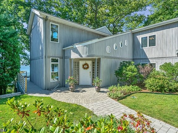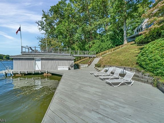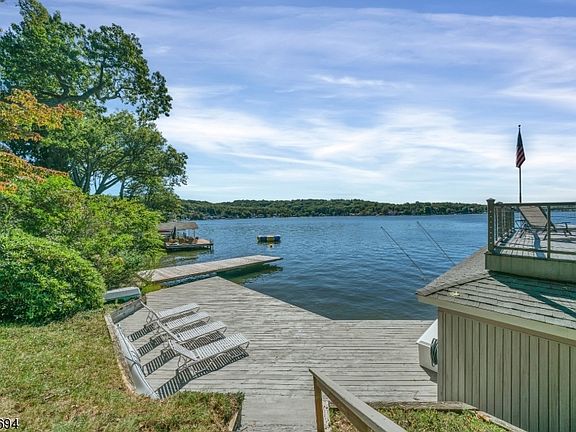Sunset views over main lake off roof top boathouse! 80ft of Lk front, 2 docks, 2 lifts, patio at waters edge. 2 Story 3620 sqft, vaulted ceilings, hardwood flooring, port hole windows, covered porch. Entry foyer opens to great rm with soaring ceiling. Kitchen opens to den & living/dining rm with sliding doors to outdoor deck & hot tub. 5 bedrms on 2nd floor with spacious master suite, walk-in closets & spa retreat full bath overlooking the lake. 1st floor full bath & option for 1st floor bedrm. Mud rm off heated 2 car att garage. Renovated kitchen white cabinetry, granite counter tops, stainless appliances. Community offers 3 miles to explore & walk to Yacht Club location. 9 mile lake to enjoy boating, skiing, fishing, swim, sail, snow mobile, skate. Boat to 9 area restaurants. 1 mile NJ transit, 1 hr NYC