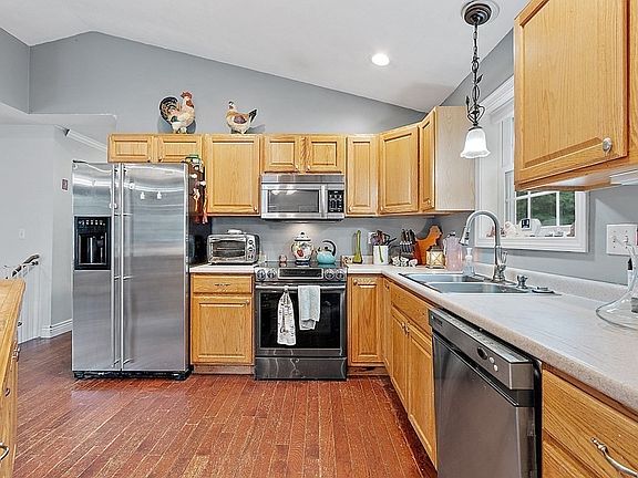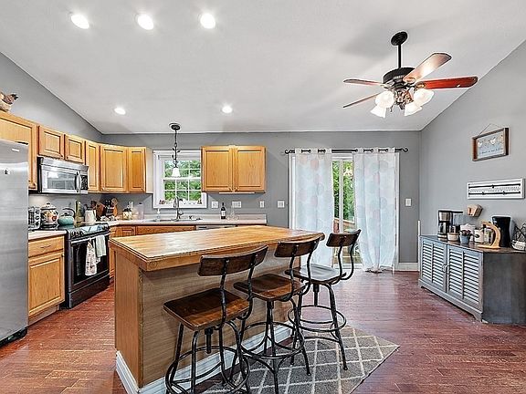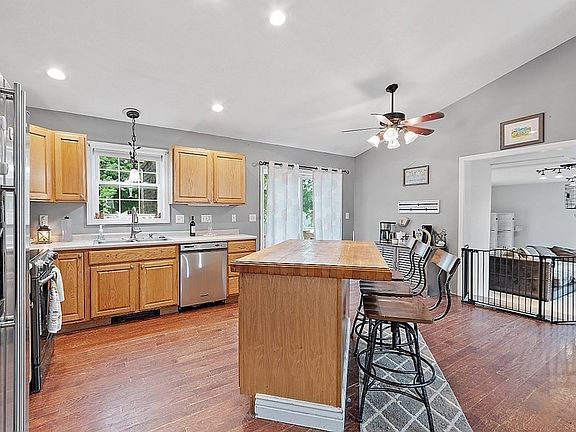 • Features: Ceiling Fan(s), Vaulted Ceiling(s), Flooring - Hardwood, Kitchen Island, Deck - Exterior, Open Floorplan, Recessed Lighting, Stainless Steel Appliances