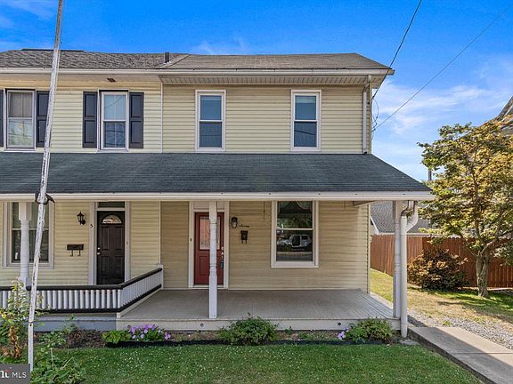 Here's your chance to own your own home cheaper than renting! Bring your paintbrush and imagination and make this charming 3 bed 1 bath property your home! Just off of the front porch is on street and an off street parking spot. Inside the home you will find a generous sized living room with dining area leading to a side porch and a quaint side yard along with a large kitchen area with tons of cabinet space and built in desk. Upstairs boasts 3 bedrooms and a bright and cheery updated bathroom. New steam boiler(2023), replacement windows and exterior doors, updated service panel have all been completed for the new home owner. Great location to walk to the train station or to many of the downtown shops and dining that Mt Joy has to offer. House sold as-is Schedule your showing today!