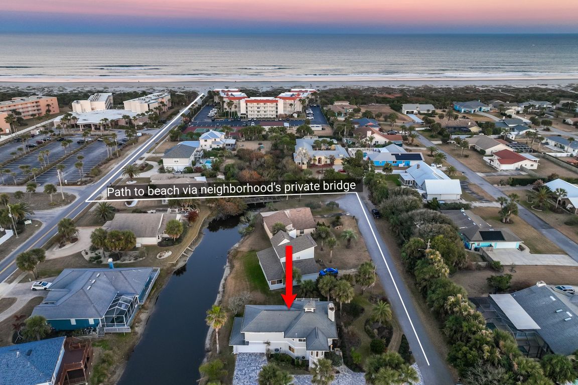 Just steps to the beach, this renovated private coastal retreat in St. Augustine Beach is tucked away on a quiet cul-de-sac and offers the perfect blend of privacy, nature, and convenience. At the end of the cul-de-sac, a charming bridge over the retention pond leads straight to nearby beach access—just a ...