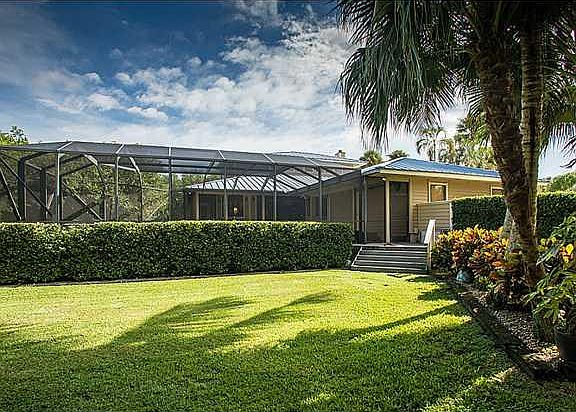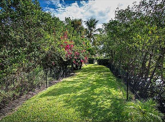 BRING YOUR BOAT! This stunning Jupiter Island home features exquisite gardens, beautiful finishes, and spacious living. The carefully planned architecture of the home balances well with the surrounding environment, offering spectacular views of the lush outdoors. Inside, floor to ceiling windows and glass doors bring the feel of the outdoors in, and high ceilings and large spaces offer plenty of room for living and entertaining. This home boasts four options for dining, with a grand dining room, a built-in dinette area, poolside dining, and a large enclosed porch with spectacular 260 degree views of the natural landscape. The large, screened-in pool is completely private and heated to enjoy year-round. Fruit Trees and two ponds. Boat dock can accommodate up to 56' boat. Over 100' of waterfront!