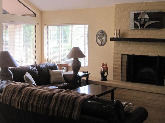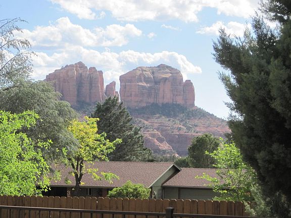 Chapel home at end of cul-de-sac with impressive red rock views. See what a house looks like when two engineer/owners remodel it. Quality and details. Practicality and beauty. Relax on your covered private patio and ponder the mystery of Cathedral Rock or view the Chapel red rocks from the front patio. Attractive new floor tile throughout entire home. Hickory custom cabinets and unique pantry in the kitchen provide efficient storage. Granite counter tops. Convenient powder room off kitchen across from laundry. Wood burning fireplace in vaulted ceiling living room. Huge windows allow lots of natural light to flood the space. Ensuite MBR also opens to rear patio. Large third bedroom with high ceiling currently used as craft, music, and workout room.Separate building permitted and currently