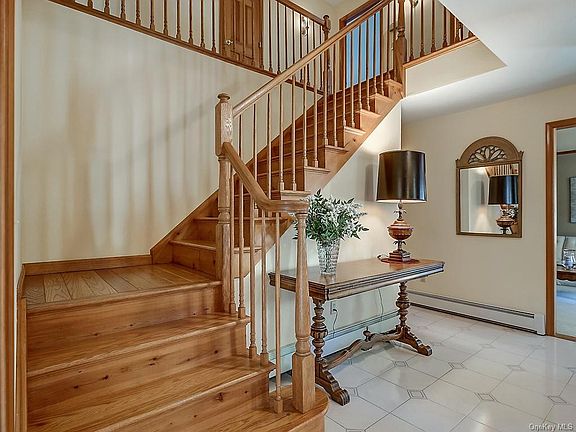 This custom built Colonial offers a home office with built ins and a separate entrance. Wonderful location on a quiet cul-de-sac with 5 acres that fronts the Pochuck Creek perfect for canoeing! Home features a bright eat in kitchen, formal dining room and living room, family room with beautiful oak surround on the brick fireplace and sliders out to a large deck with motorized awnings, making it great for summer entertaining! Master bedroom with private balcony, walk in closet and master bath. The laundry room is conveniently located on the second floor, as is a large walk in storage area. You can access the second floor by a formal, front stairway or a back stair off the kitchen. The doors in the house are six panel wood. The basement is a full, unfinished, walk out with large windows.