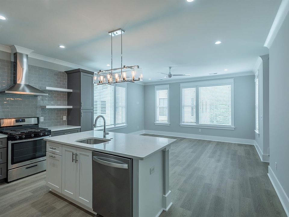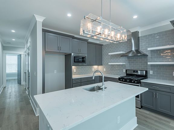 Modern designPremium stainless-steel whirlpool appliancesSleek quartz countertopsSerene airy atmosphereGarbage disposalGas range with hoodChef-inspired kitchen