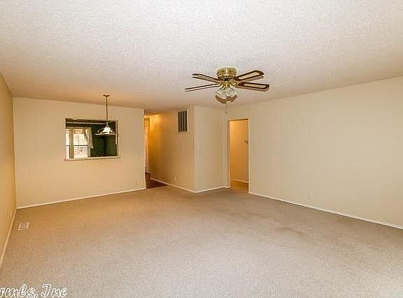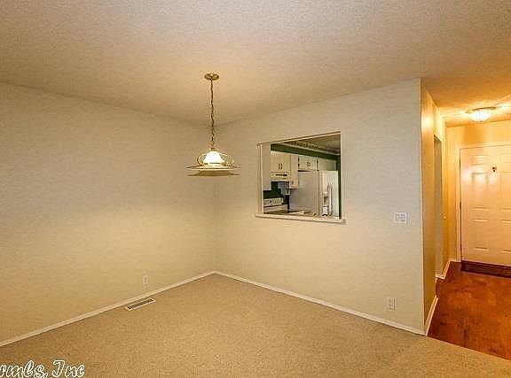 1120 sq/ft 2 bedroom 1.5 bath condo/townhouse for rent located at 7 Sandalo, Hot Springs Village in Jessieville School District about 5 minutes from the West Gate main entrance. Very clean with new appliances and Central AC/Heating Unit. House is all electric. Lots of kitchen cabinets and closets. House has sliding doors opening up to a back deck that is covered by a retractable Sun Setter Awning that leads to a picnic area surrounded by a nicely wooded area. The third bedroom was an addition that is off of the master bedroom and would serve well as a small bedroom or office. House comes with stackable washer/dryer. Lots of parking. 12 month minimum lease that includes all the benefits of being an property owner. With this lease you will have auto decals and property owner ID's. There will be an application fee of $25.00 for each adult occupant to cover the cost of a background and soft credit check. No smoking. No pets. Deposit is $760.00. MOVE IN SPECIAL 1/2 OFF 1ST MONTH RENT