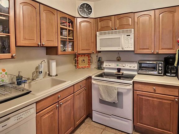 2nd floor upper end unit condo. Large living room with slider to private balcony. Dining room, kitchen and bathroom with laundry and floor to ceiling tile. 2 bedrooms with ample closet space.