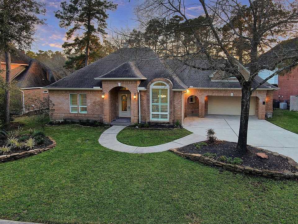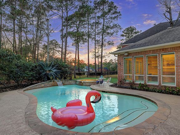 ABSOLUTELY TURNKEY, single-story, highly desirable Cochran's Crossing Shadowpoint location. This home backs to a beautiful pond with water views. Beautiful pool/hot tub. All 3 bedrooms en suite plus a private study. The fully remodeled kitchen has quartz counters, stainless appliances, island with gas cooktop. Formal dining, den with fireplace & pool/lake views, plantation shutters, 2 gas log fireplaces, 2 half-baths, soaring ceilings. Sunny breakfast area overlooking pool, oversized primary bedroom w/ pool views. Surround sound wiring, LowE Pella windows. Enjoy your own backyard retreat with pool/cascading waterfalls, spa/hot tub, synthetic turf grass for easy maintenance and no back neighbors, water views of pond behind home. This home has a bonus gameroom, playroom, toy room, craft room or even a second study over the garage (1/2 story). Incredible home will go quickly!