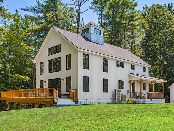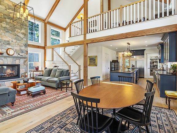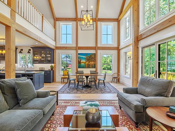 Nicely situated within a short distance to Dover, South Berwick, Portsmouth and Kittery. Stunning Contemporary Farmhouse by Yankee Barn Homes Located in Victoria Point sub-division and overlooking Salmon Falls River. Custom built 2021 and situated on 1.098 acres. This strikingly beautiful Post & Beam home offers 2560 square feet +/- of custom designed living space, top quality craftmanship, ICF foundation, plaster walls, multiple wrap around decks, welcoming farmers porch, fully finished walk out lower level, and oversized 2 car detached garage. First floor offers open concept design with soaring ceilings and spectacular great room with cupula and exposed Connecticut stone gas fireplace, and sliding glass doors leading out to expansive deck. Chef's kitchen is equipped with high end appliances, farmers sink, 6 burner gas stove, wine fridge, soapstone countertops and 14 foot center island. Living and dining room look out across the beautiful views and focus attention to the custom built stone fireplace. First floor also offers a primary bedroom suite with tiled shower, marble floor and vanity. Custom built exposed wooden staircase leads to second floor with open loft office area and additional primary bedroom with walk in closet, and ensuite bath featuring Japanese soaking tub, cantilevered double marble vanity, subway tile backsplash and tiled shower. Fully finished walk out lower level with ensuite bedroom and 3/4 bathroom, kitchenette area, and family room. Pleasure to show