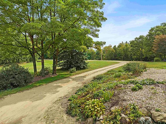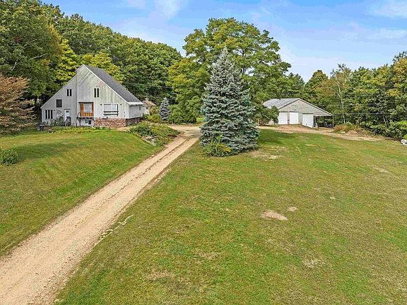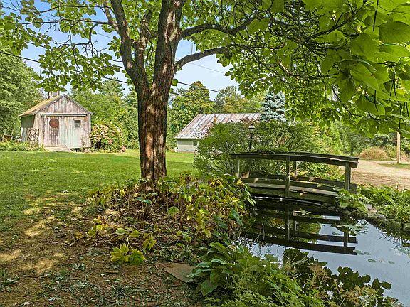 This spacious contemporary home with a massive 5-bay barn on 21.29 acres is being offered for sale in Tilton. Partially finished after a total renovation, major updates have already been done, and the home awaits completion by its new owner. This property has so much to offer, including a fantastic location on a quiet, private road just minutes from I-93, shopping, and all Lakes Region attractions. Rural agricultural zoning allows for many possibilities for in-home businesses, agricultural, or forestry endeavors. The 2,916 sf. garage/workshop plus 1,080 sf. carport provides incredible workspace and storage, with an office space, 2 mezzanine decks, a track lift, hydraulic car lifts, a compressor, wood stove, and 5 commercial bays. Many updates to the home include a new FHW heating system, an indirect water heater, and radiant heat on two levels (main level and the primary bedroom/living room level). Featuring unique stonework, the brand new chimney is a stunning centerpiece in the kitchen! Other updates include a new gas line, water line, sewer line, and new wiring. A new central A/C system is almost complete. The home is framed for an elevator to access all levels and a 10' door/window at the main entrance. The property features extensive landscaping, with a koi pond, specimen trees, beautiful perennial gardens, and two outbuildings. This serene, yet very convenient location at the top of a hill is ideal; video and 3D tour available.